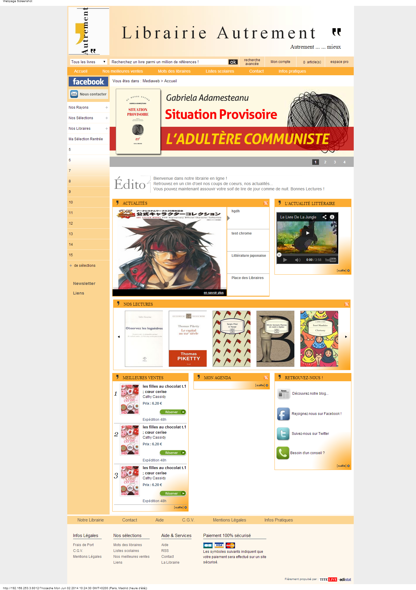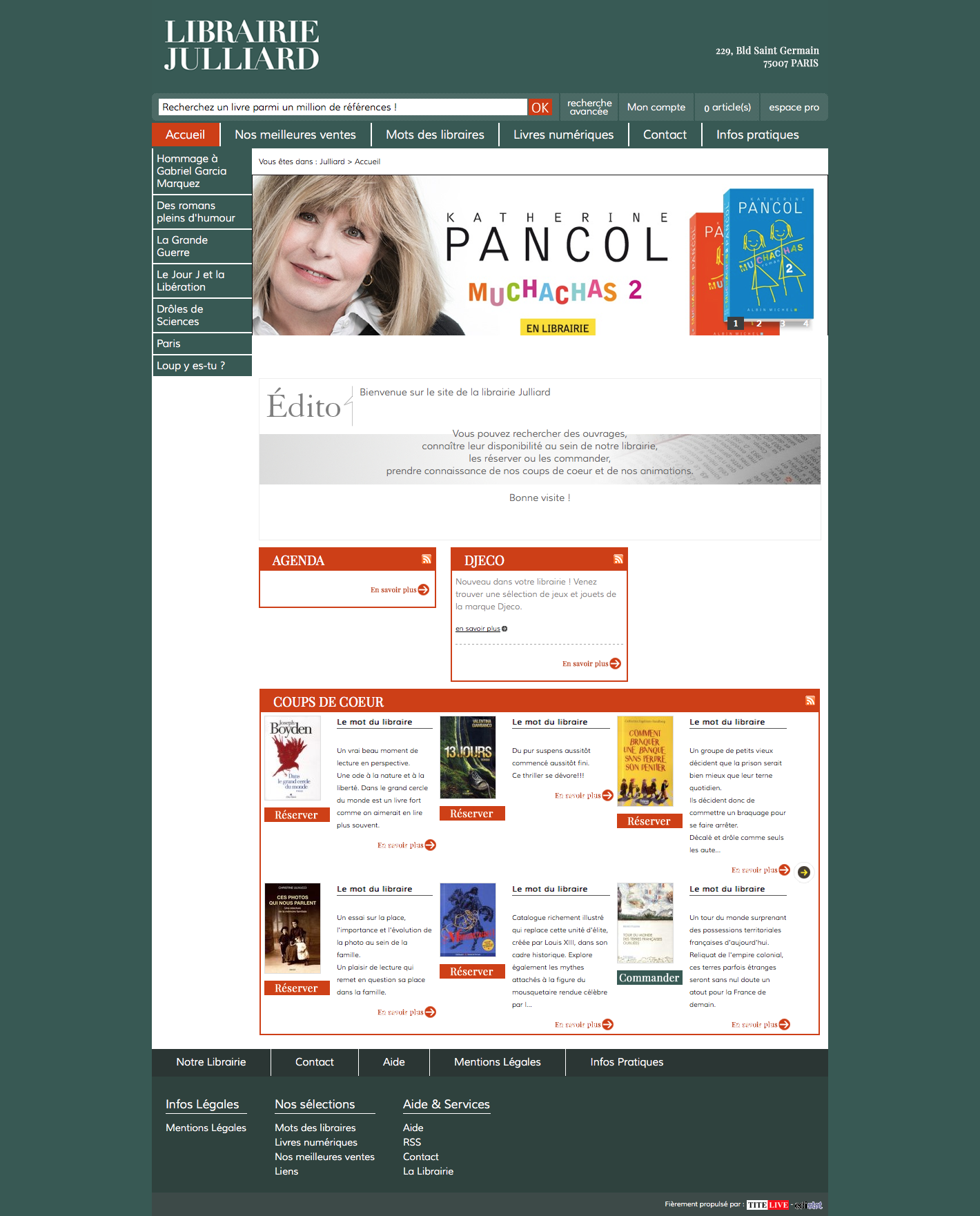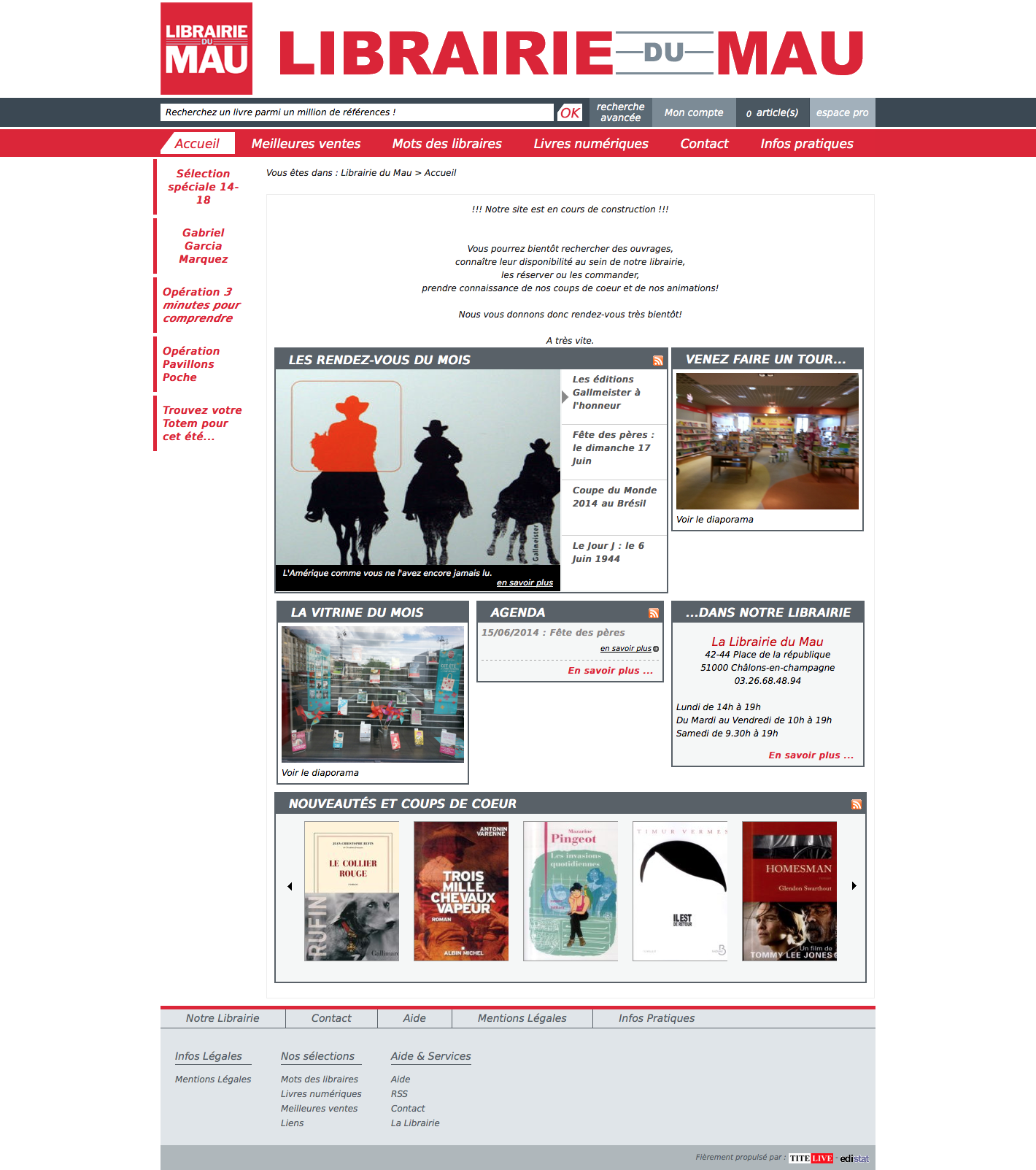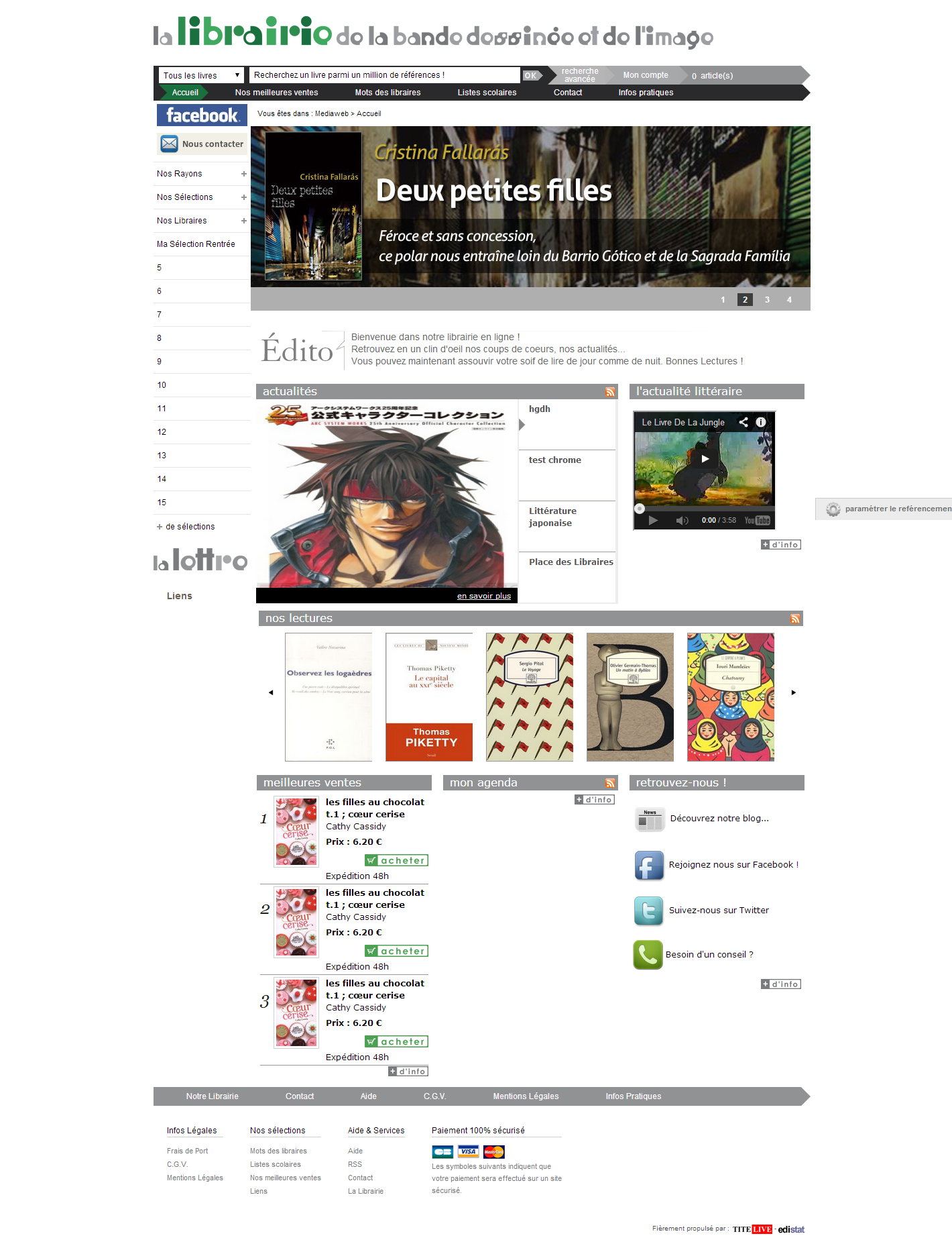 Borne tactile destinée à la vente de livre numériques en librairie. Intégration de la maquette. Choix et intégration du plug-in jQuery pour le slider tactile. Intervention sur code HTML et organisation du code PHP du site.